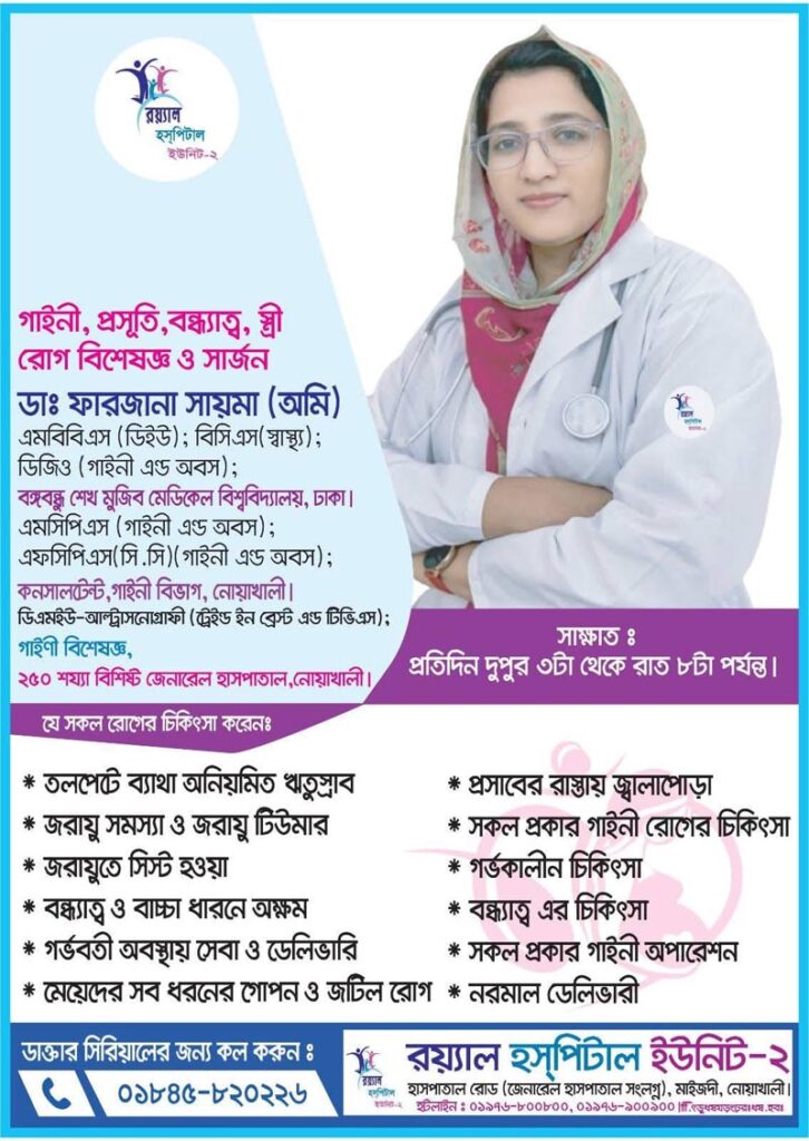 গাইনী, প্রসূতি, বন্ধ্যাত্ব, স্ত্রী রোগ বিশেষজ্ঞ ও সার্জন