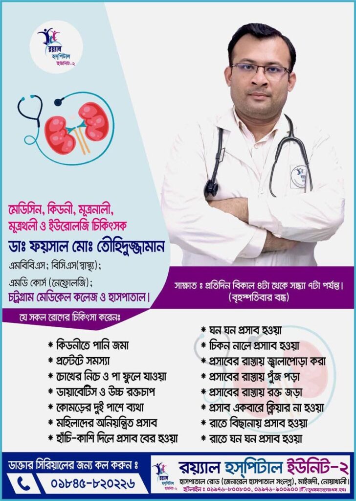 মেডিসিন, কিডনী, মূত্রনালী, মুত্রথলী ও ইউরোলজি চিকিৎসক