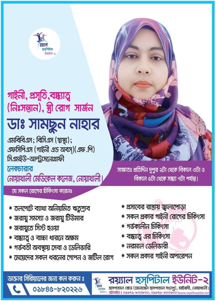 ডাক্তার সিরিয়ালের জন্য কল করুনঃ ০১৮৪৫-৮২০ ২২৬