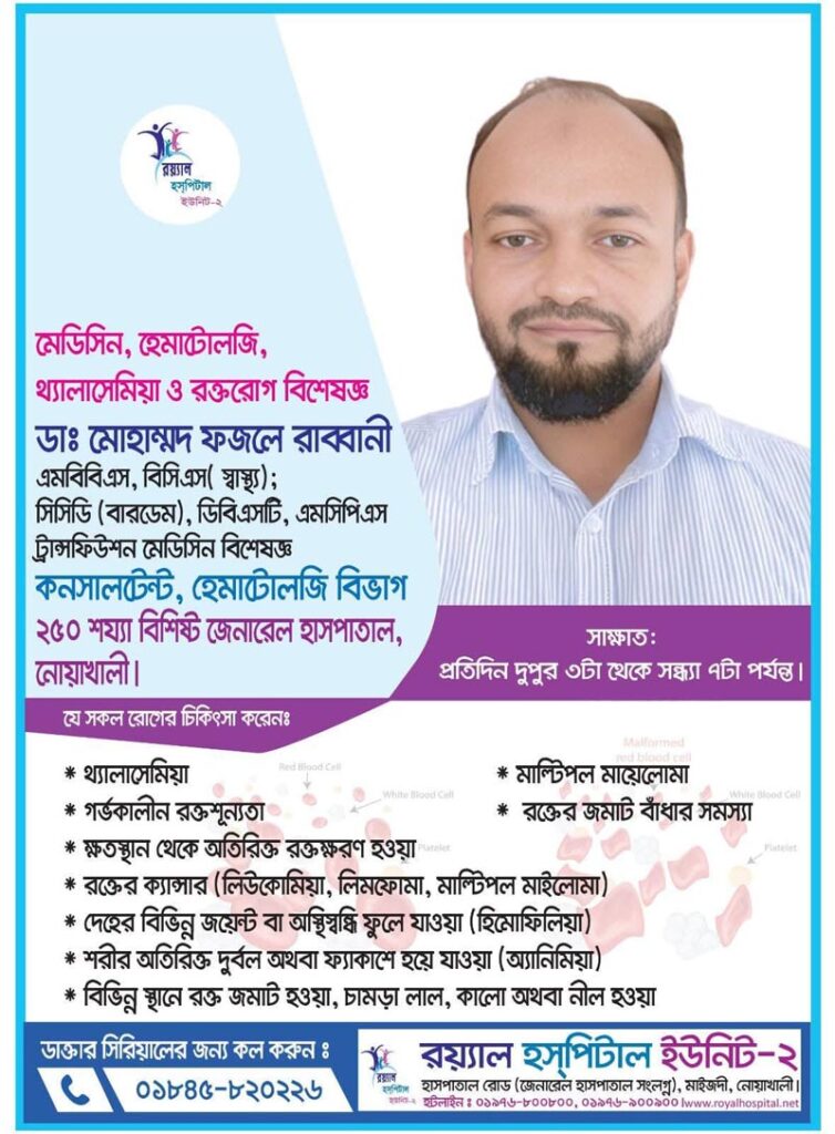 মেডিসিন, হেমাটোলজি, থ্যালাসেমিয়া ও রক্তরোগ বিশেষজ্ঞ