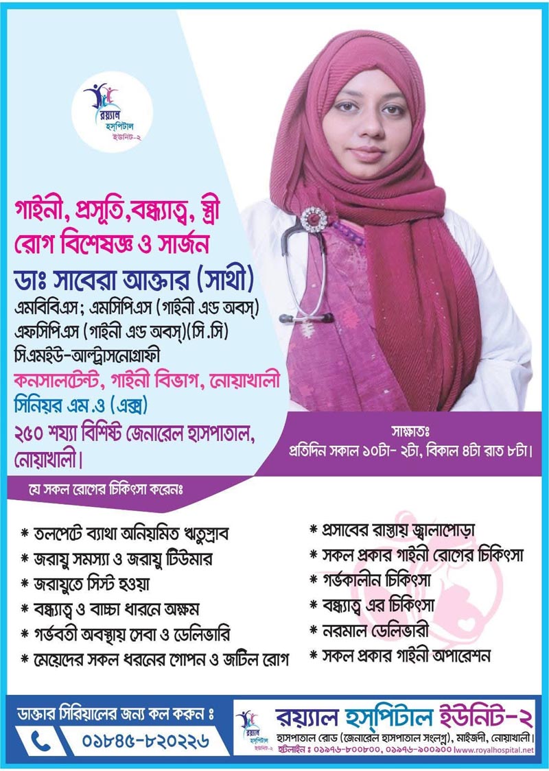 কনসালটেন্ট, গাইনী বিভাগ, নোয়াখালী
